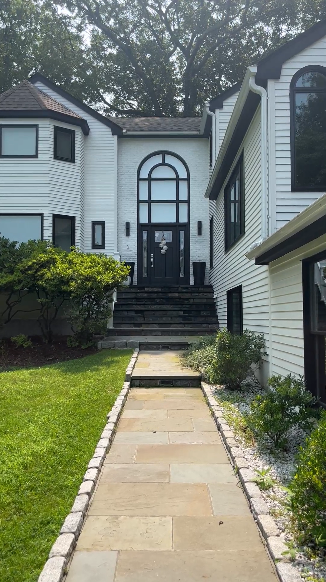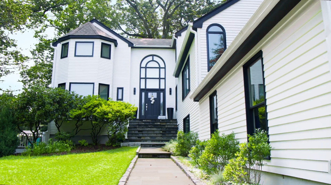 This Weston, CT home underwent a dramatic exterior facelift designed to refresh dated finishes and introduce a more modern, cohesive aesthetic.