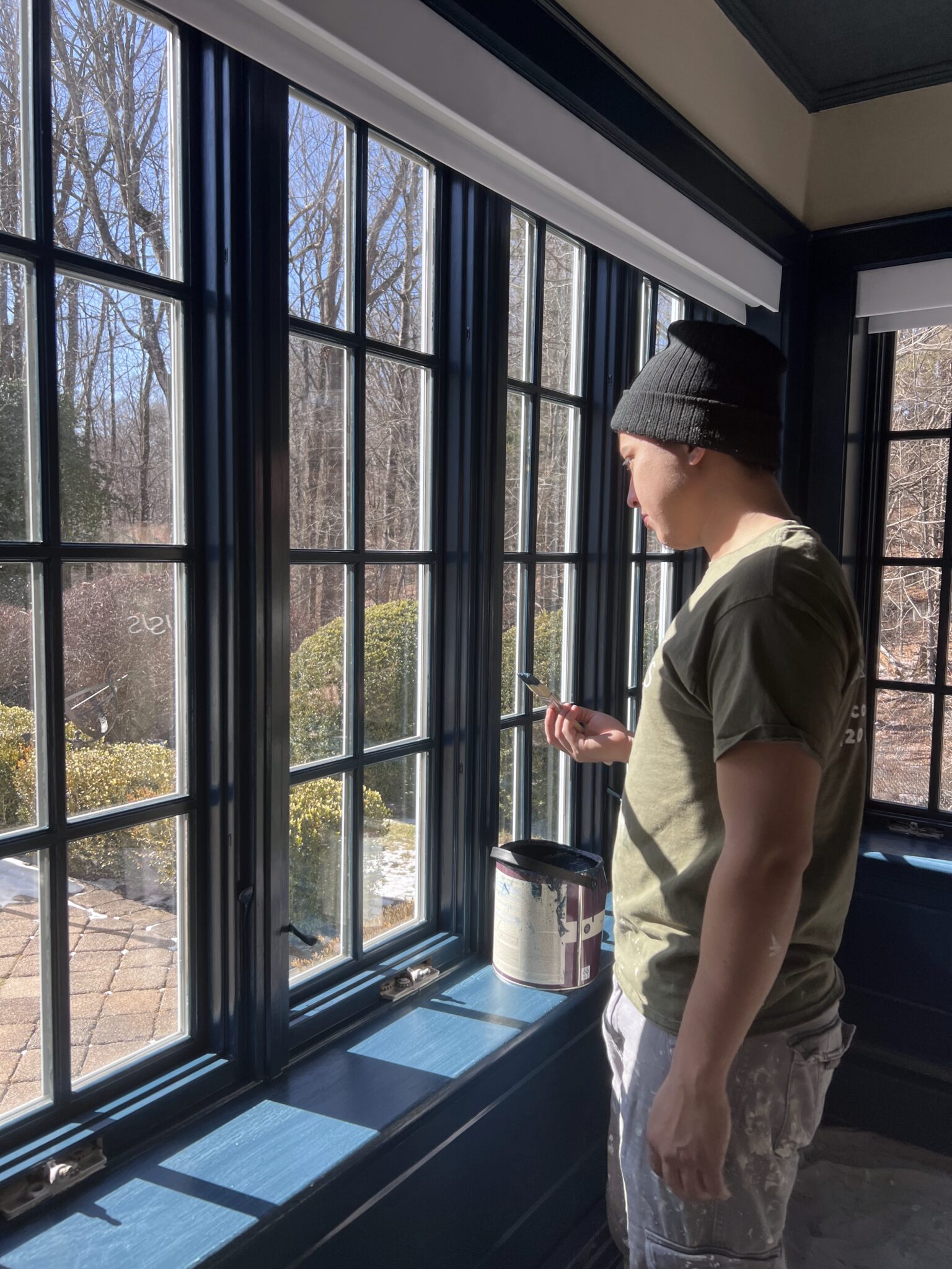Used bonding primers to transition from oil to latex paint, finishing with an eggshell coat in Hangue Blue.