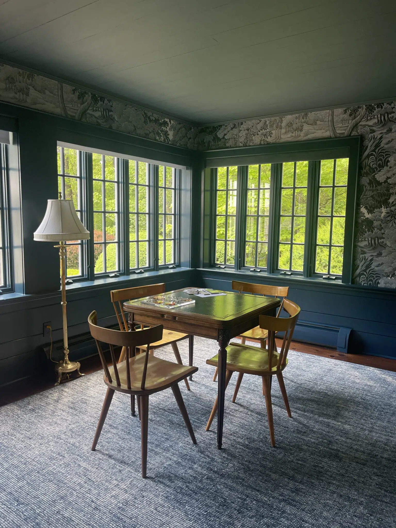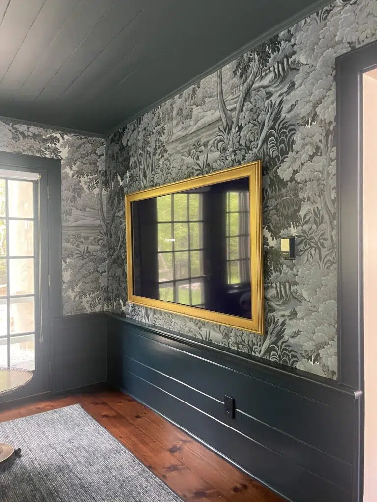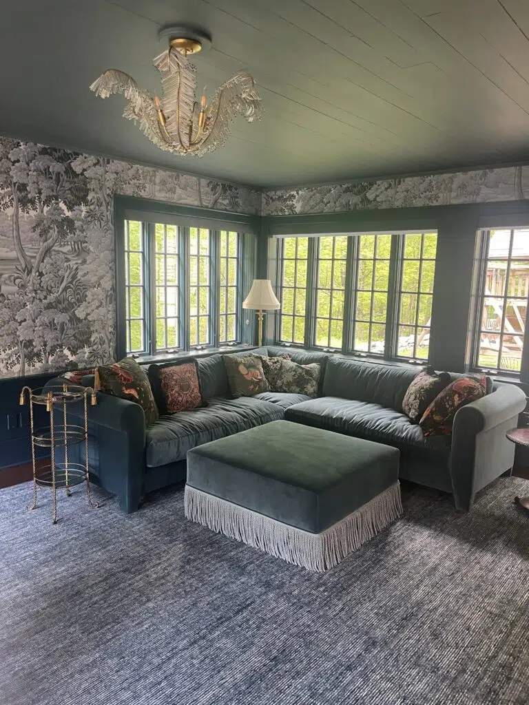 Greenhaus Painting recently completed an interior play room painting project in Stamford, CT. Over 1.5 weeks, we transformed the space with Farrow & Ball Hangue Blue on the ceiling in a flat finish and matching trim in an eggshell finish. We also prepared the walls for a stunning Plantasia Indigo wallpaper installation, handled by one of our trusted partners.